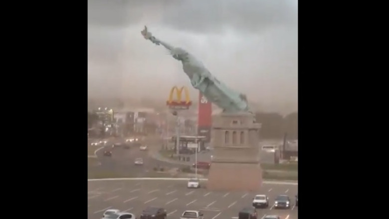 Statua, care reprezenta jumătate din înălțimea celei originale din New York, a fost surprinsă înclinându-se periculos înainte de a cădea în parcarea unui complex din Guaíba. Imaginile video dramatice surprind momentul exact în care structura de 24 de metri s-a prăbușit la ora 15:00, chiar în plină furtună.